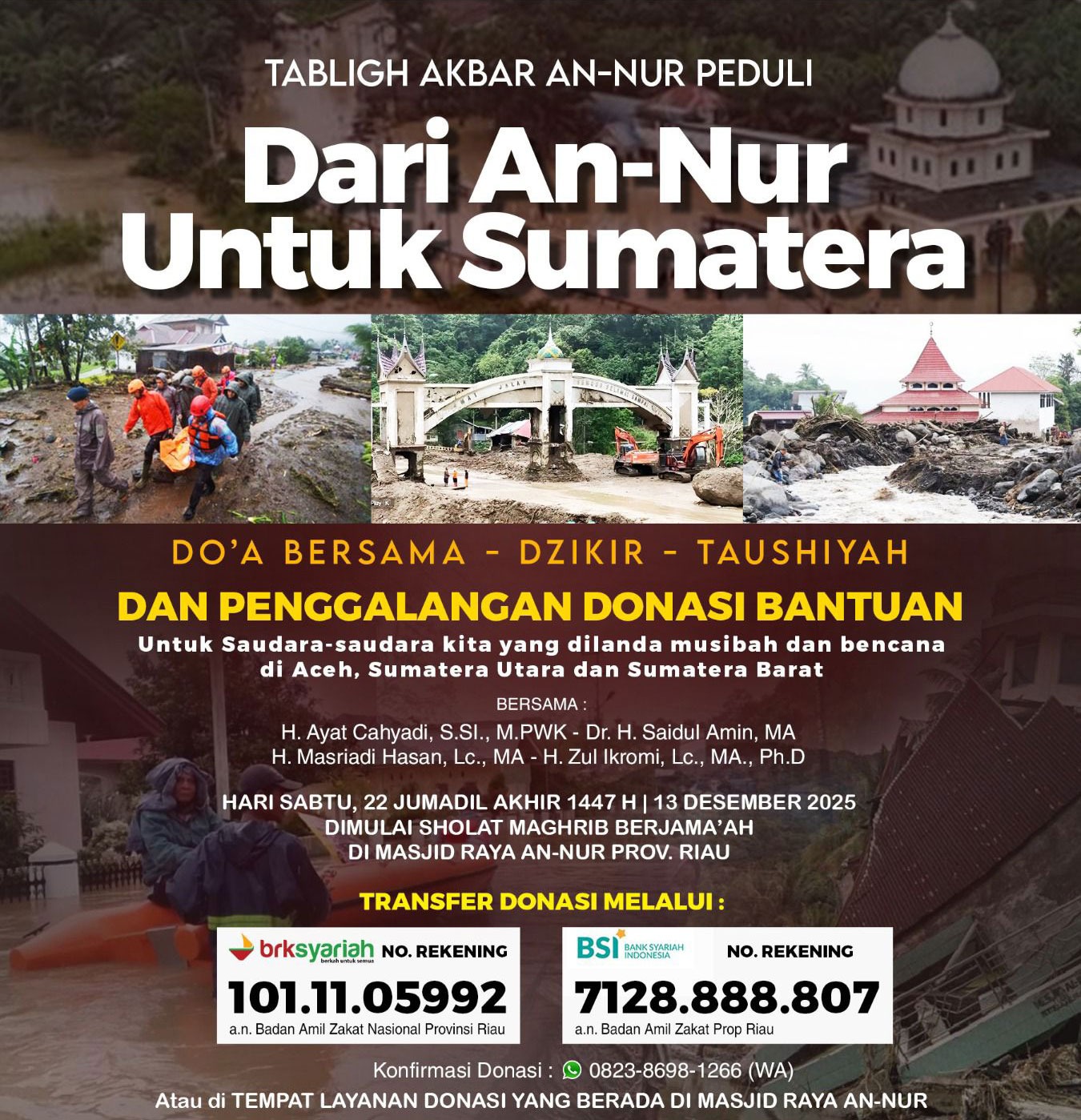 Besok, Masjid Raya An-Nur Gelar Doa Bersama dan Penggalangan Bantuan bagi Korban Bencana Sumatera