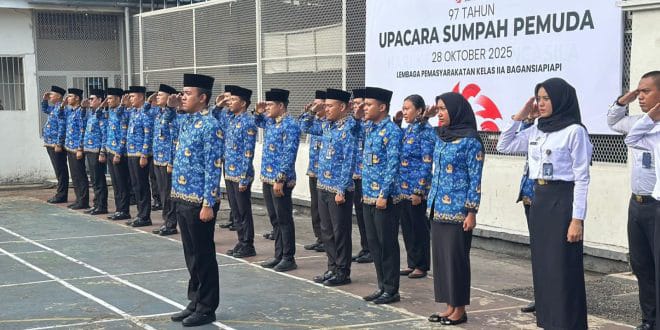 ROHIL, Narawarta.com – Dalam rangka memperingati Hari Sumpah Pemuda ke-97 tahun 2025, Lembaga Pemasyarakatan (Lapas) Kelas IIA Bagansiapiapi melaksanakan upacara bendera di lapangan Utama Lapas, Senin pagi, 28 Oktober 2025.