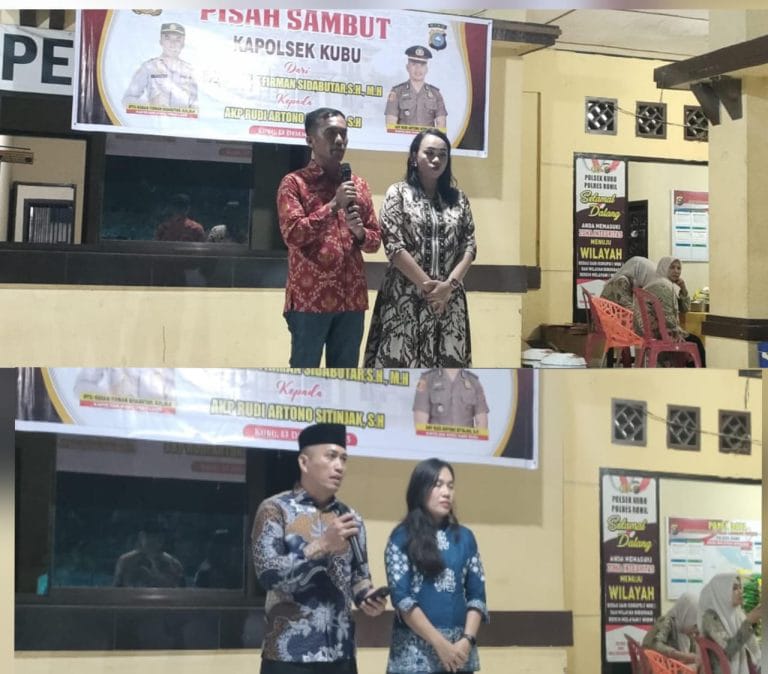 Dalam sambutannya, Kapolsek Kubu yang lama, Iptu Kodam Firman Sidabutar, SH, menyampaikan ucapan terima kasih kepada Upika, tokoh masyarakat, tokoh adat, serta seluruh masyarakat Kubu dan Kubu Babussalam atas dukungan dan kebersamaan selama kurang lebih satu tahun sembilan bulan masa tugasnya.